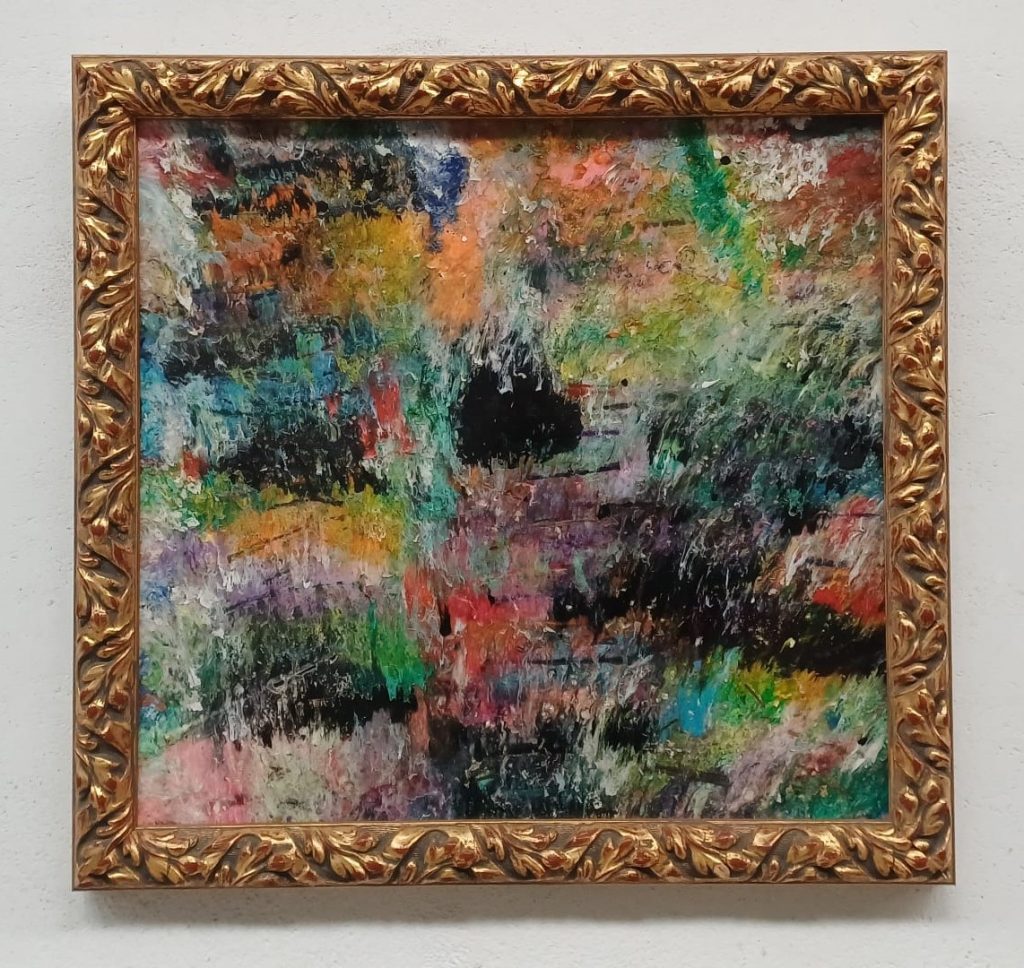 • «ESCRITURA» Fabricado con rotuladores reciclados, que recogemos en centros escolares de toda Extremadura. Tienen el aspecto de una pintura impresionista
