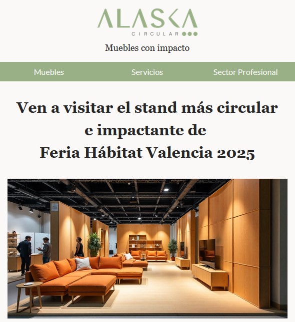 Vamos a asistir a la Feria Habitat en Valencia, que se celebrará los días 29 de septiembre a 2 de octubre. Para ello, vamos a integrarnos en el stand de ALASKA CIRCULAR, que va a exponer todo tipo de soluciones en mobiliario sostenible.